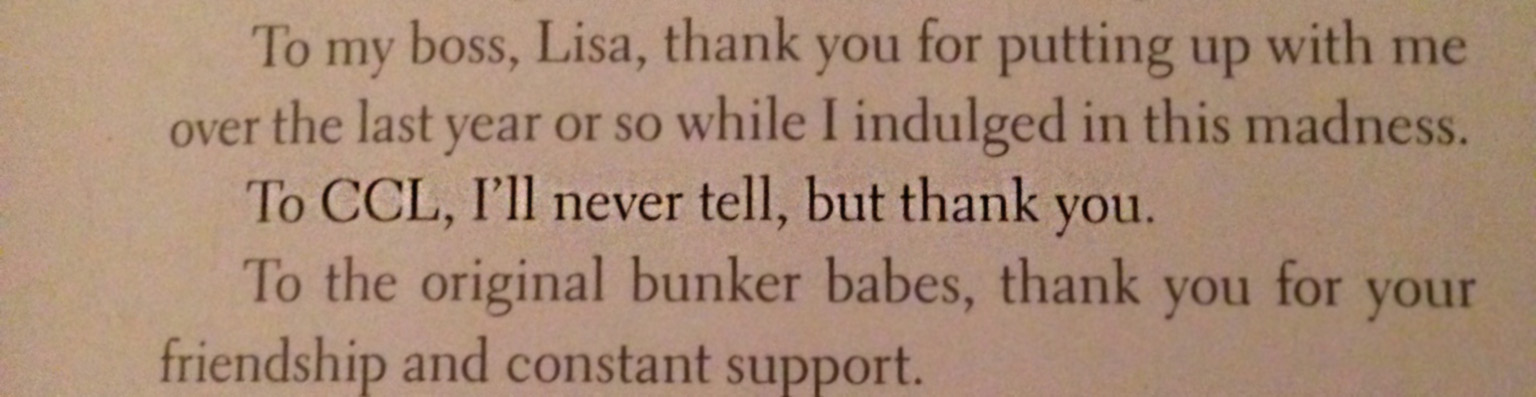 Didn’t this book have an editor?! Why is this woman not a wife and a mother anymore?! And what did I do to deserve this shout out in the dedication (I’ll never tell either)