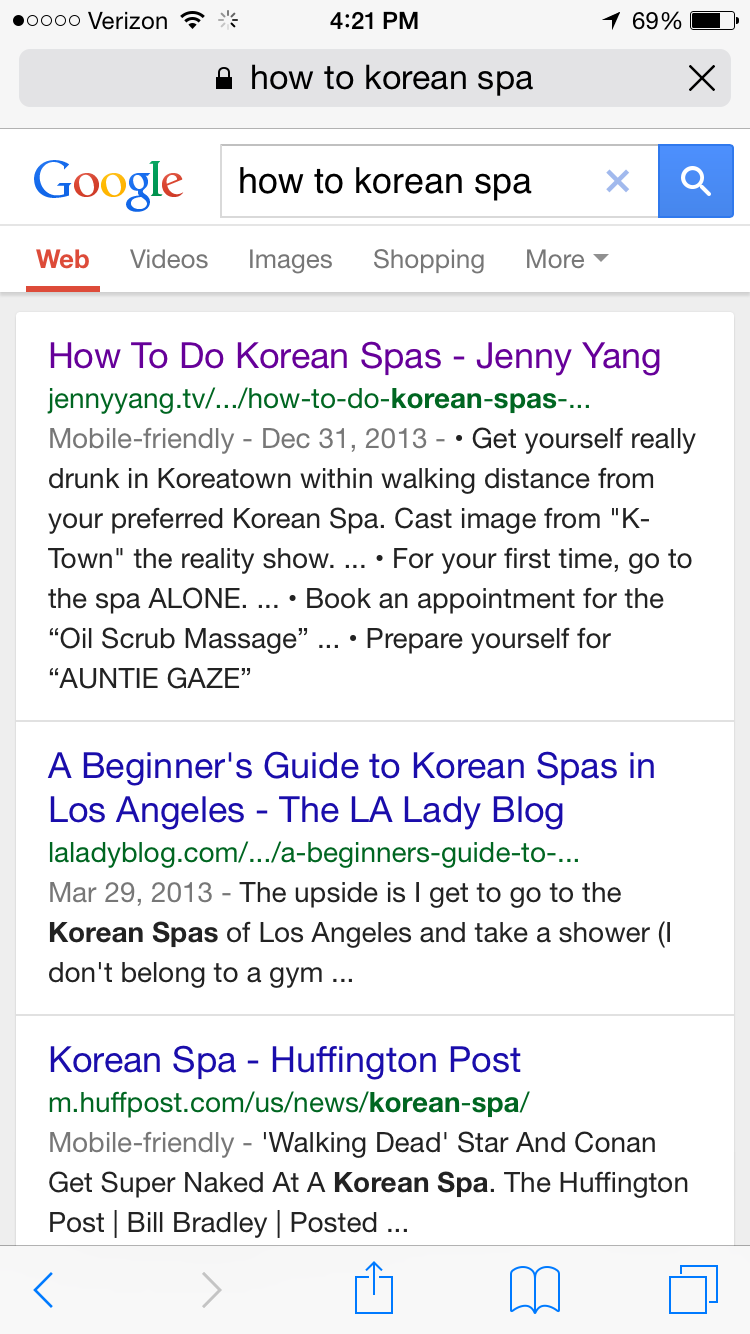 I truly had no clue what to expect aside from a perfect (as always) joke from the sitcom guru that is Happy Endings (“Well, I didn’t like Korean spas until I learned how to say the phrase, ‘I don’t wanna bleed today’.)