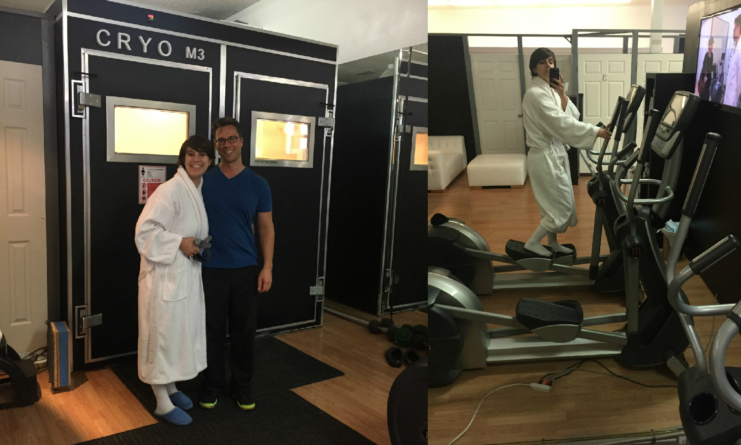 I got changed into my robe, knee socks, and gloves, and The Cryo Wizard secured my earmuffs and facemask. I was instructed by various hotties to enter the chamber, take off my robe, and keep myself busy for 1 minutes and thirty seconds. UGHHHH alone with my own thoughts for that long?! If the cold didn’t kill me, the self-reflection would.