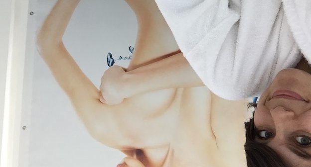 I hung up my robe and felt pretty confident that no one was seeing my naked body from the neck down BUT the pictures I made them take of me tell a different story. I’m about as tall as you can be for a lady if you have any amount of bodesty [that’s body modesty. And yes it’s brilliant]!