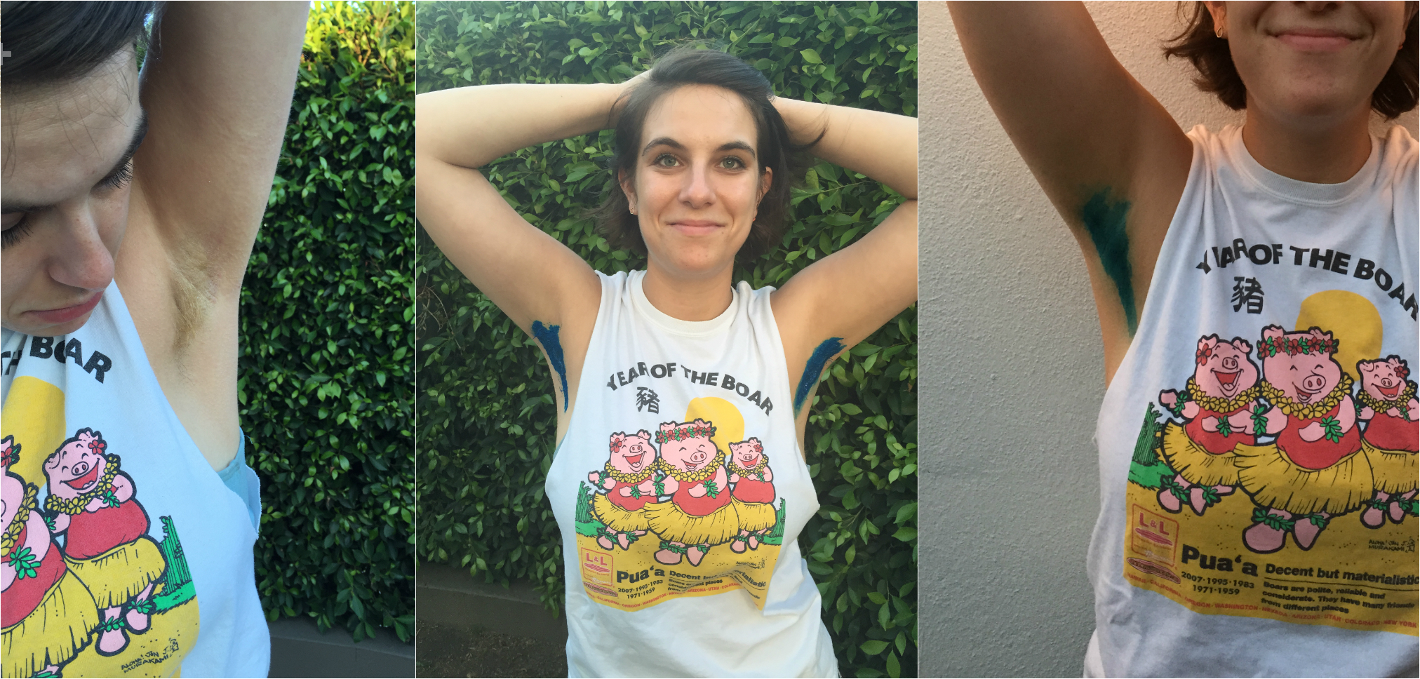 Here’s the part where I show you lots of pictures of a woman with long armpit hair. I know, you weren’t expecting this, so I just wanted to warrrnnnn you: if you do not wish to see a woman (namely, THIS woman) with her armpit hair a-blazin, please do not read beyond this point.