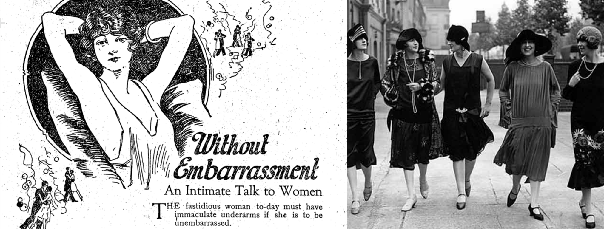 I found myself needing to dive into the history of shaving and the root of my pit shame. TURNS OUT American women had no need to shave their under arms until around 1915- because no one ever saw them! In fact, armpits where quite a scandalous area (and word!) because of their close proximity to **whispers** bbrrreaaasssttttttts. Then came along the sleeveless dress, and women were encouraged (by Harper’s Bazaar!) to get rid of any unsightly hair before going out in public pits-first.