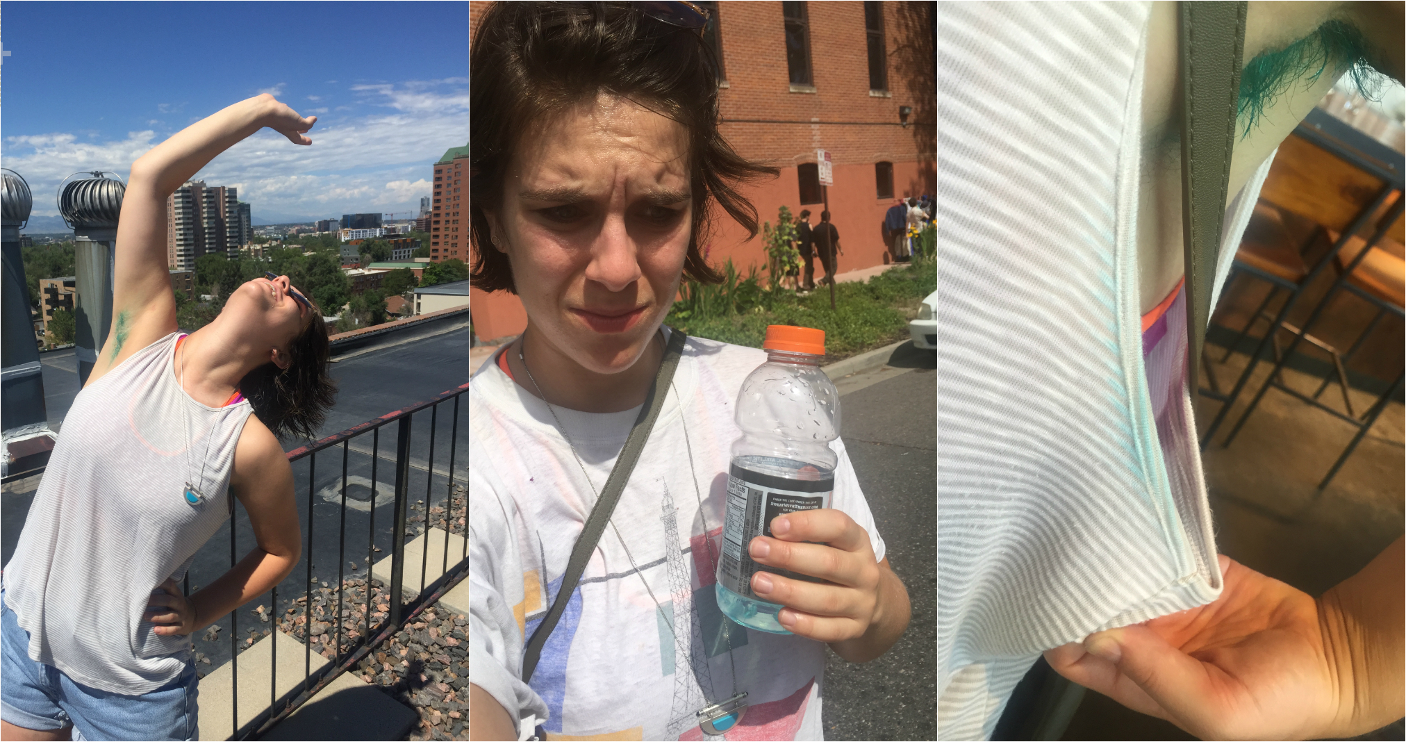 I threw on my cutest, whitest tank, and took to the streets. Unfortunately the streets were incredibly hot, and the blue was not staying put. It took about three rounds of scrubbing myself raw in the shower to remove all of the excess dye from my skin.